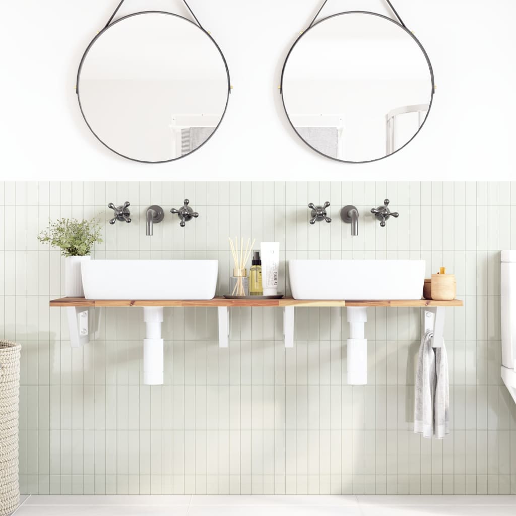 vidaXL acél és tömör akácfa falra szerelhető mosdópolc