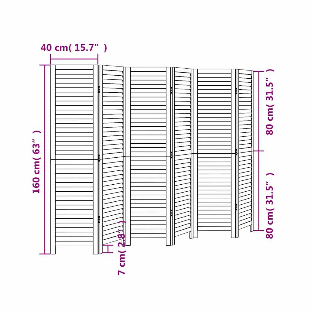 vidaXL 6 paneles fehér tömör császárfa térelválasztó