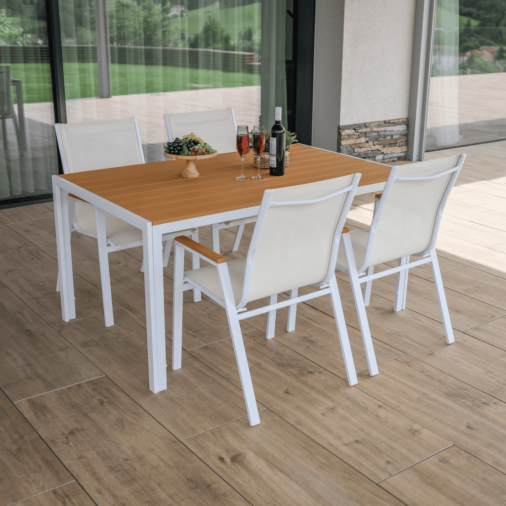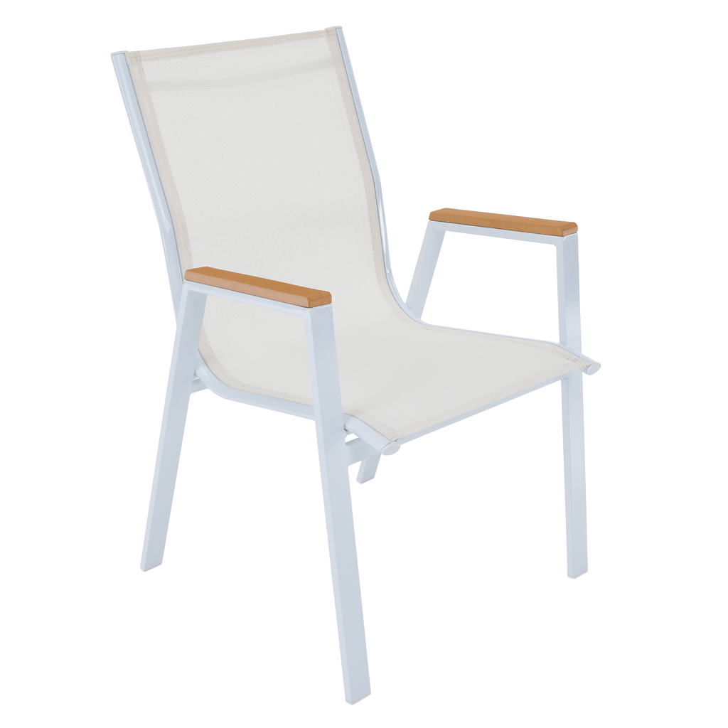 Kerti rakásolható szék, fehér acél/tölgy, BONTO