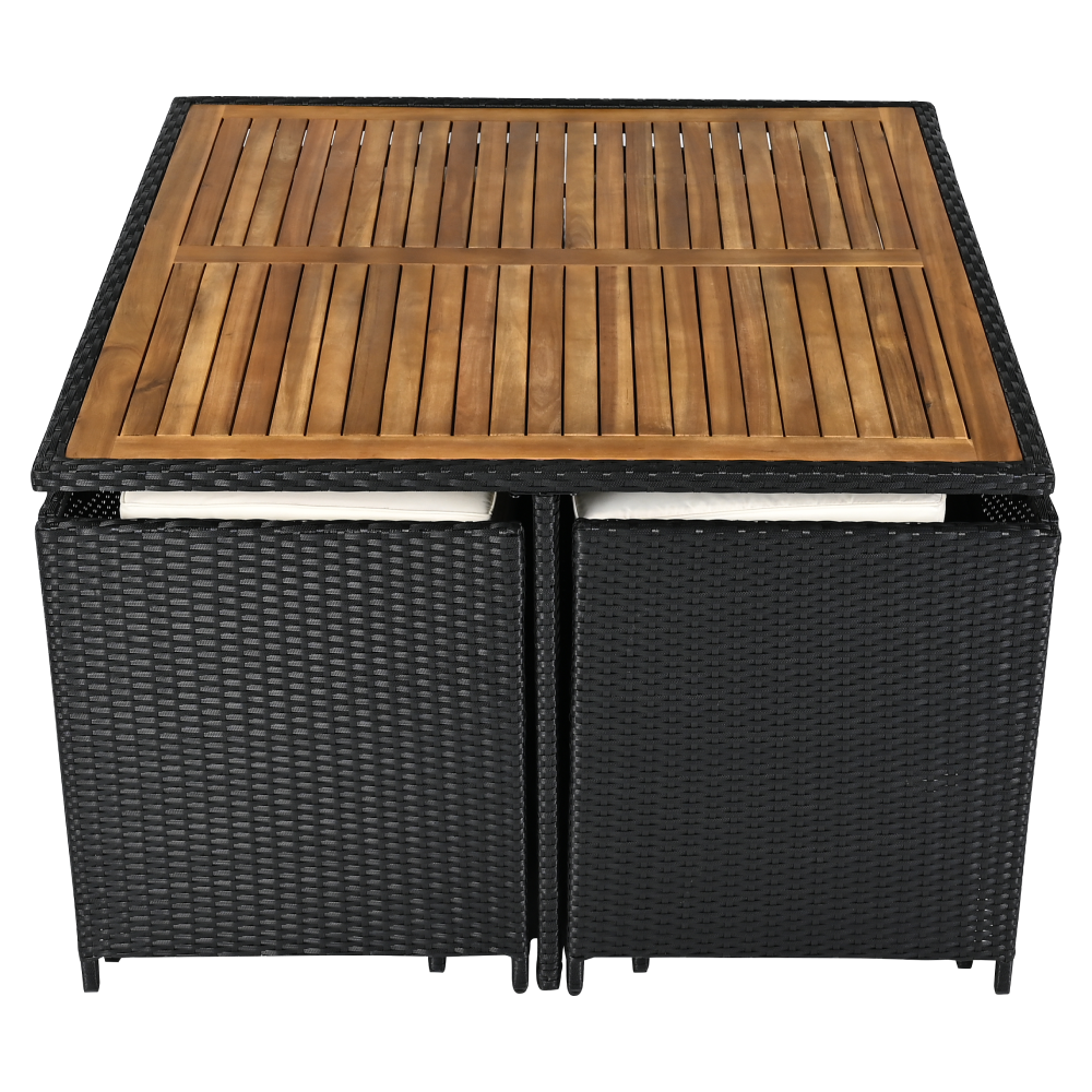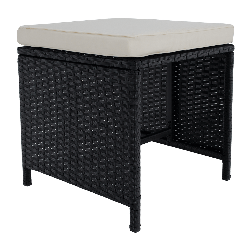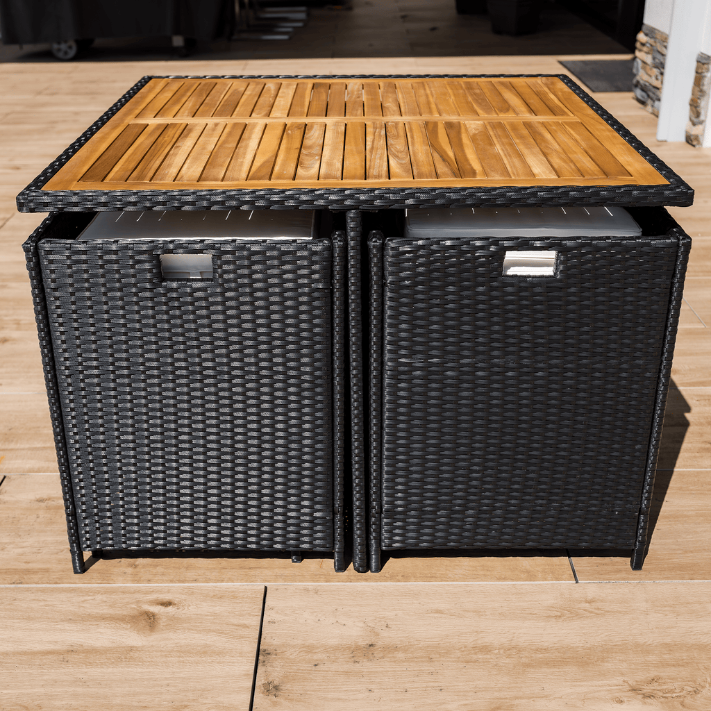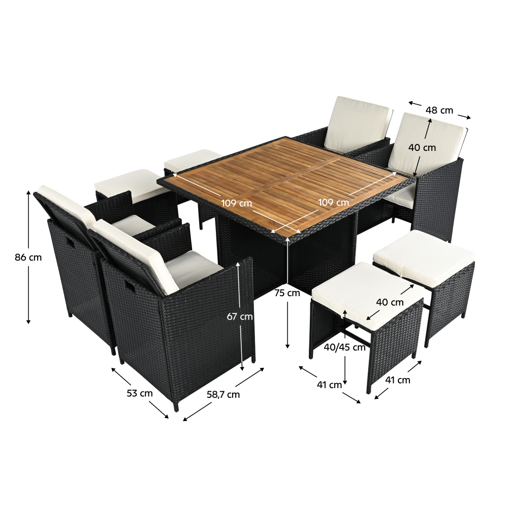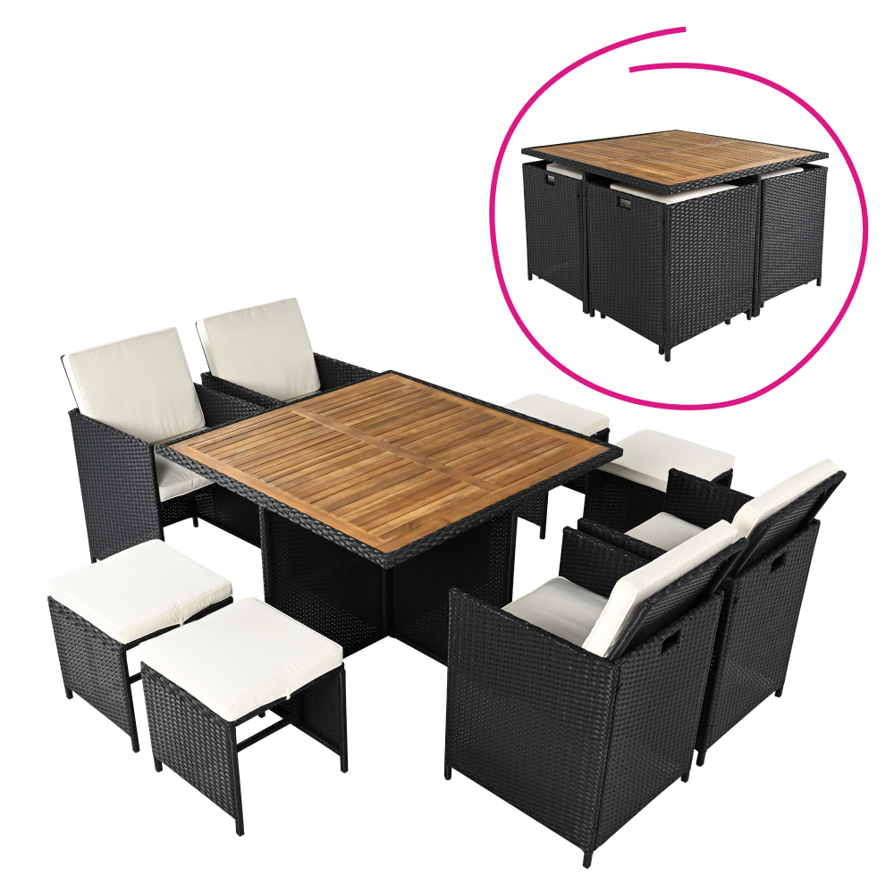 A fotel és a puffok elrejthetők az asztal alatt