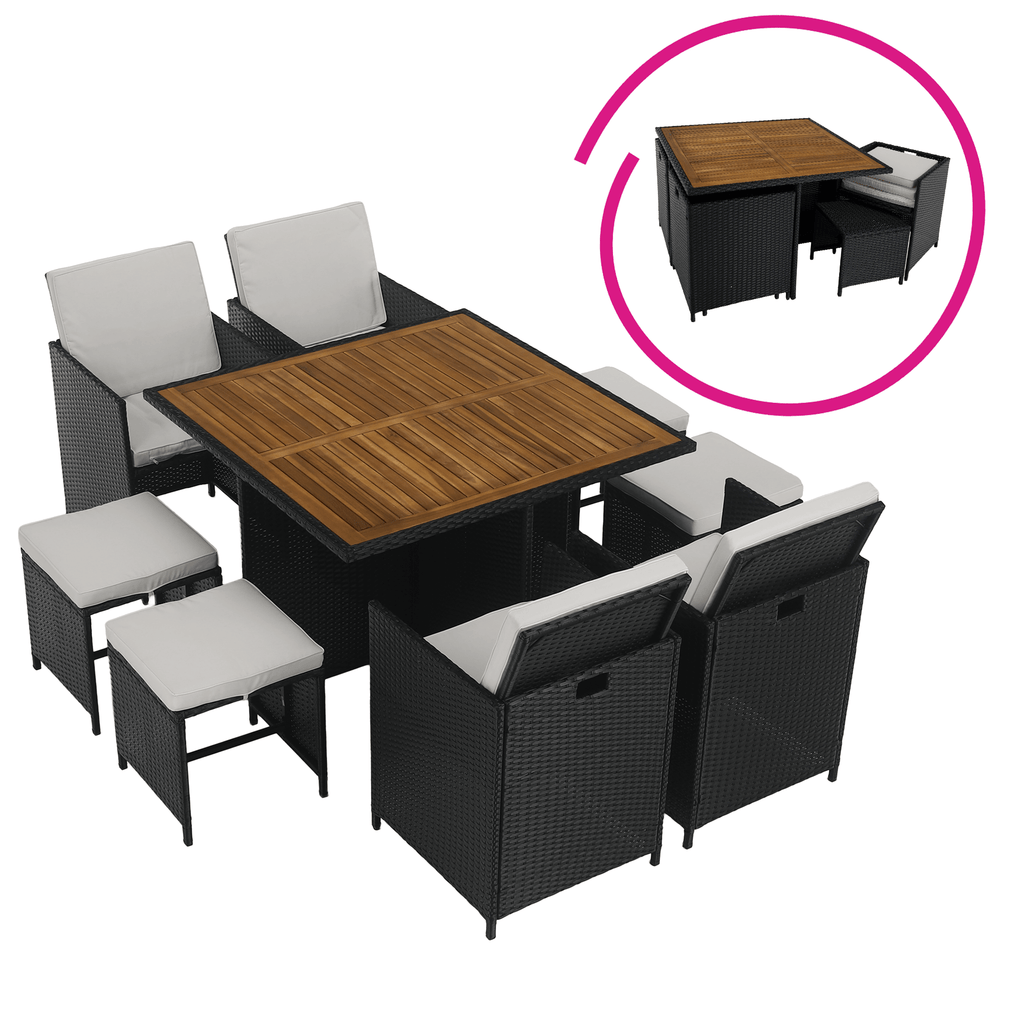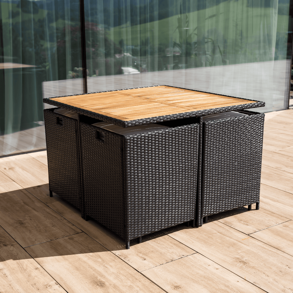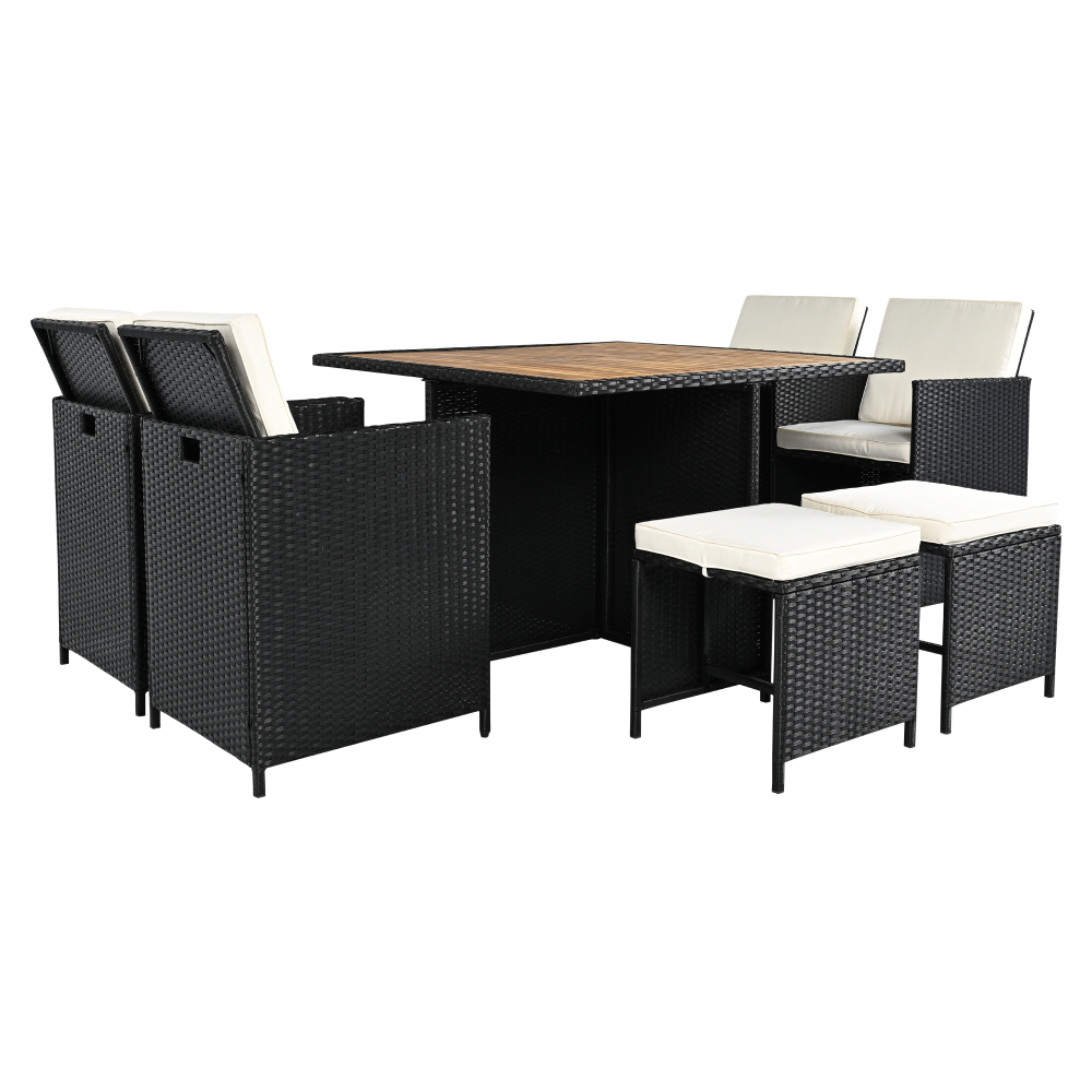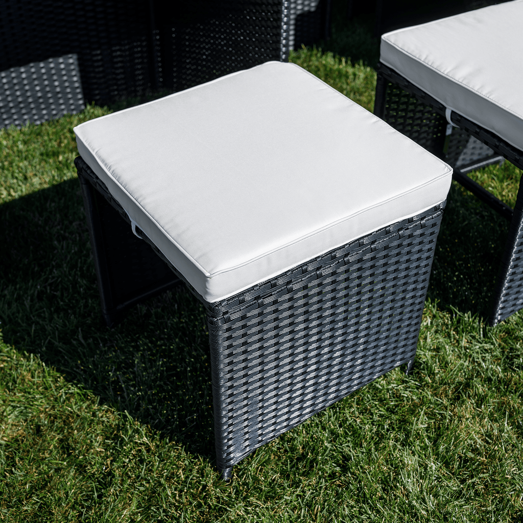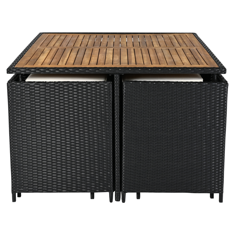 A fotel és a puffok elrejthetők az asztal alatt