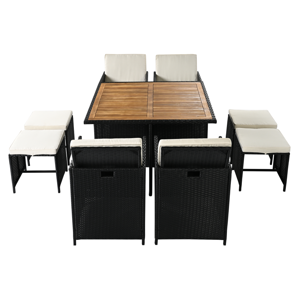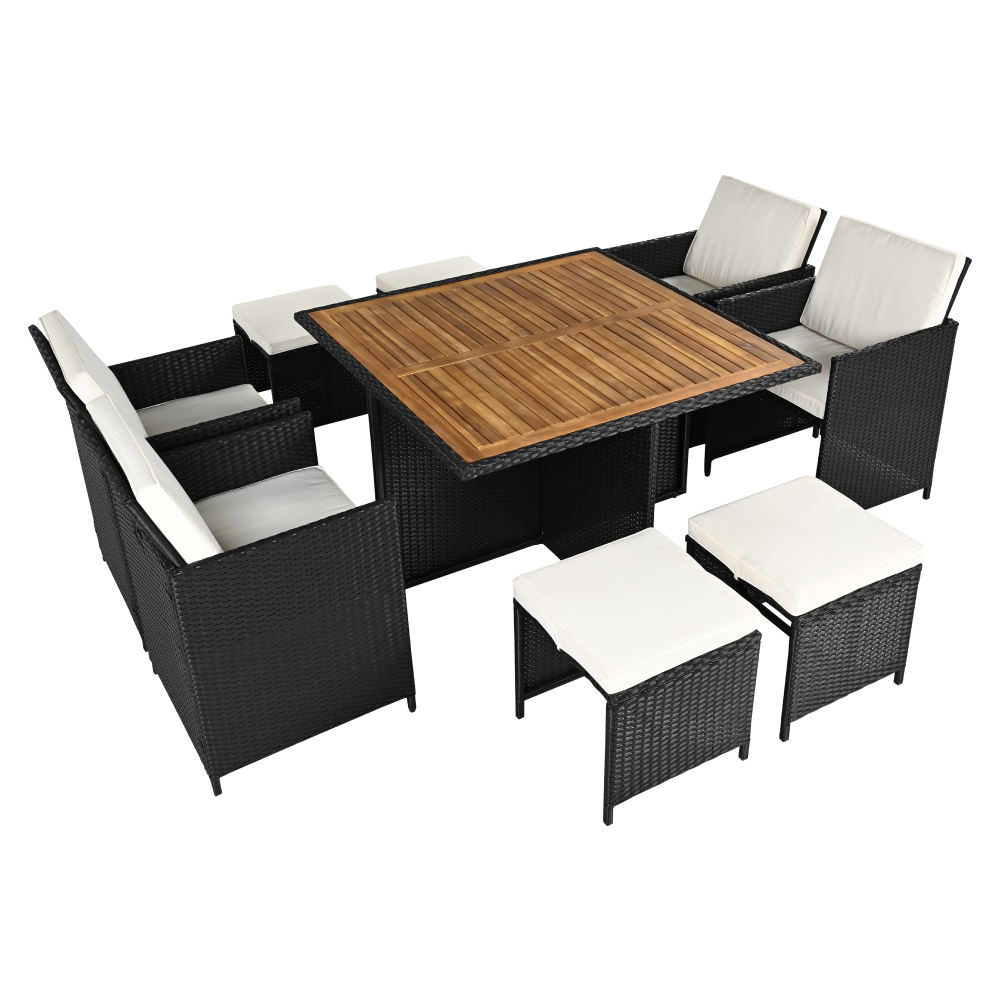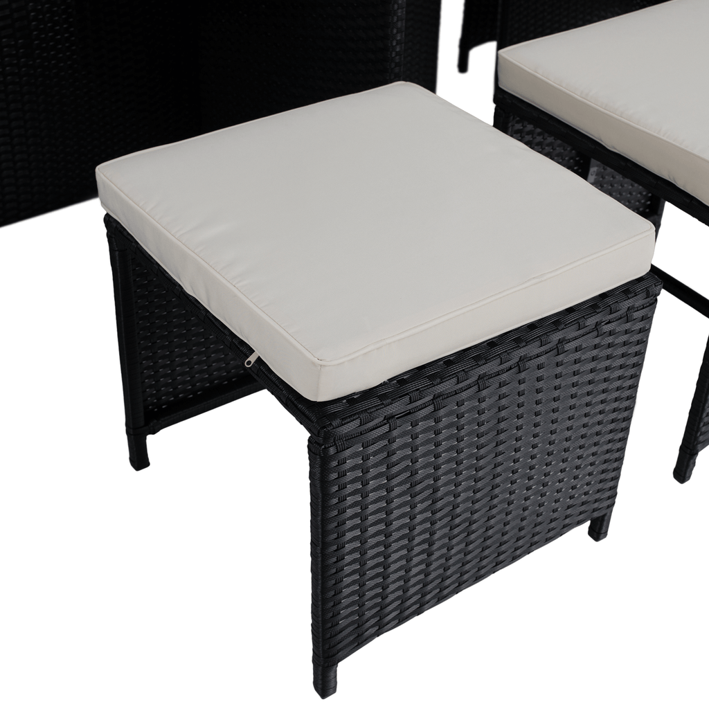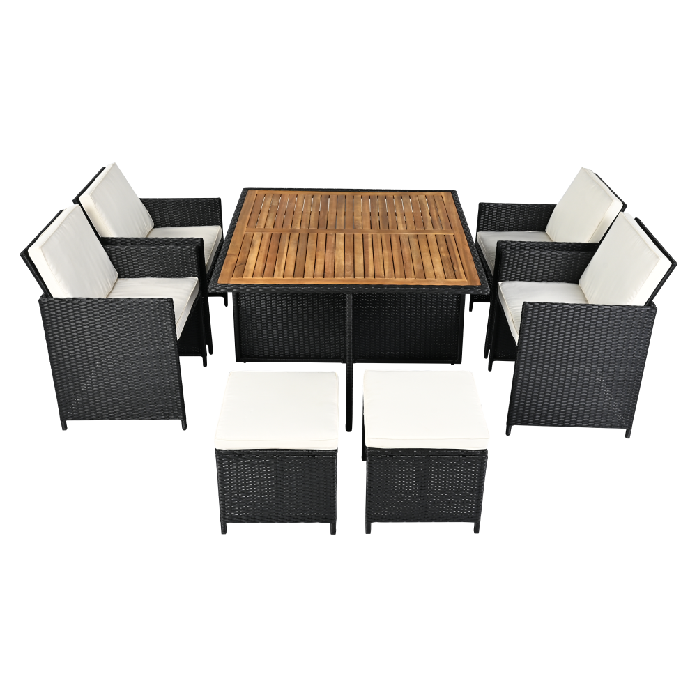 A fotel és a puffok elrejthetők az asztal alatt