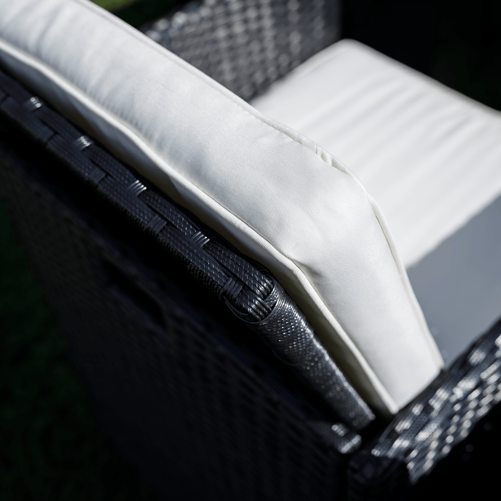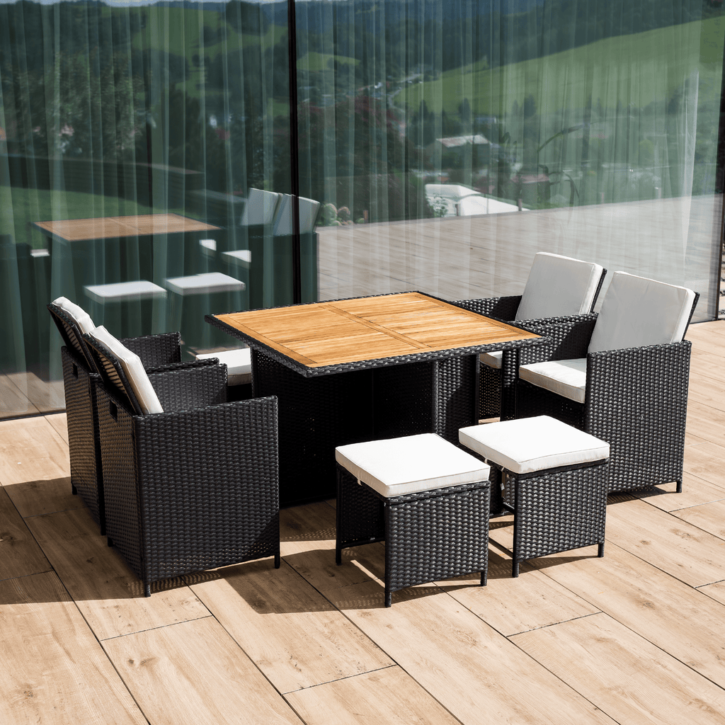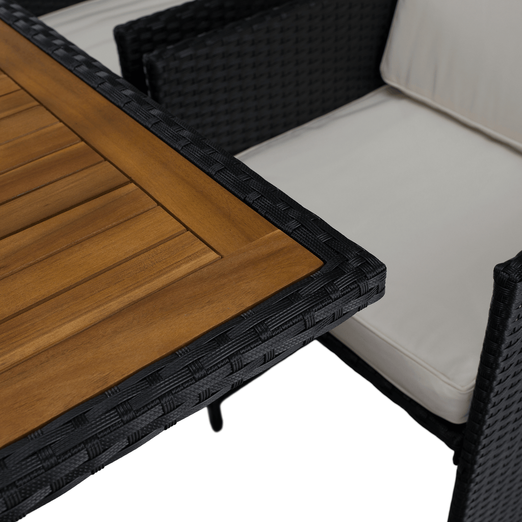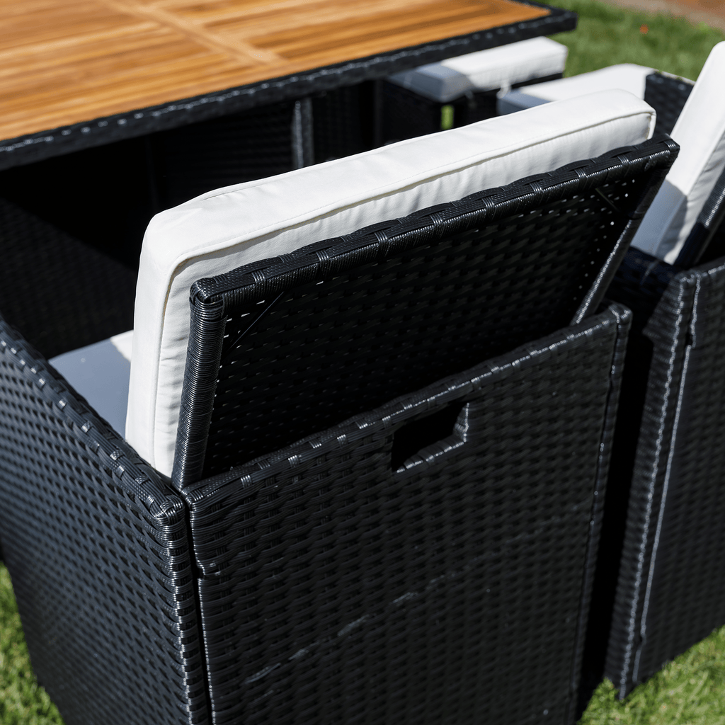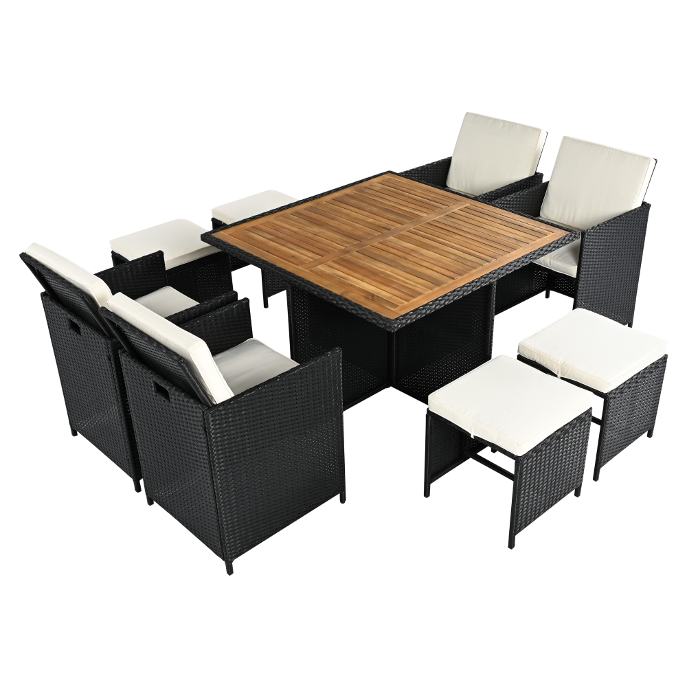 A fotel és a puffok elrejthetők az asztal alatt
