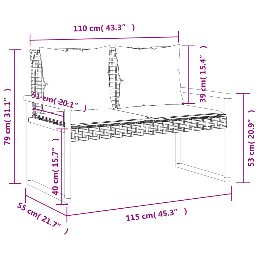 vidaXL fekete polyrattan és akácfa kerti pad párnával