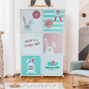 Gyerek szekrény, kék/gyerek minta, EDRIN