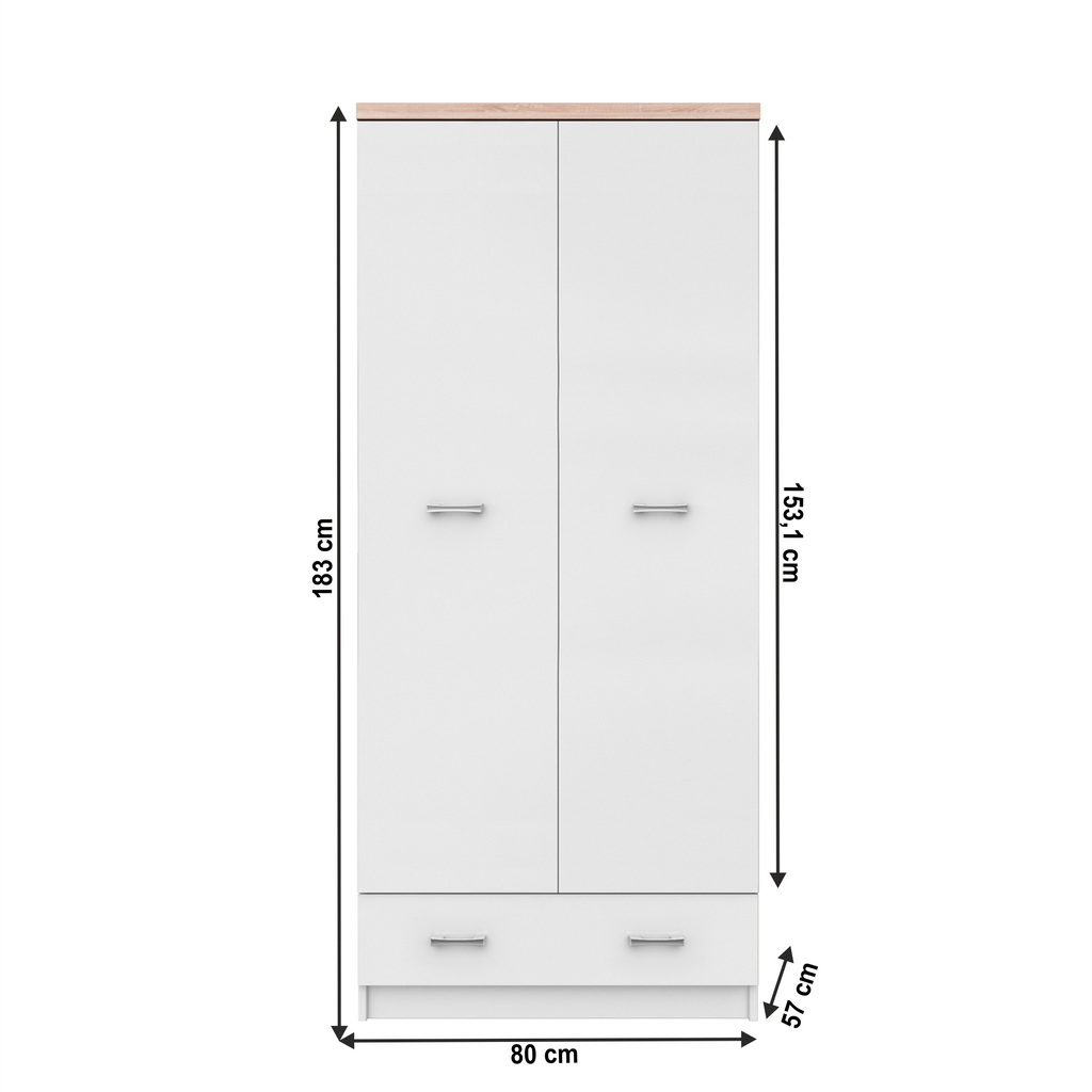 Méretek (SzéxMéxMa): 80x57x183 cm