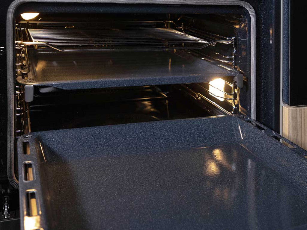 Sütőtér: 72 l, érintőszenzoros vezérlés, gyerekzár, ECO program, pirolitikus program, 13 sütési funkció, 5 sütőszint, gőztisztító rendszer, gyors előmelegítés, lapos és mély tepsi, sütőrács,3 rétegű teleüveg ajtó, Soft Close, Satin fekete tömör fogó, belső LED világítás, húsmaghőmérő, Energiaosztály: A+