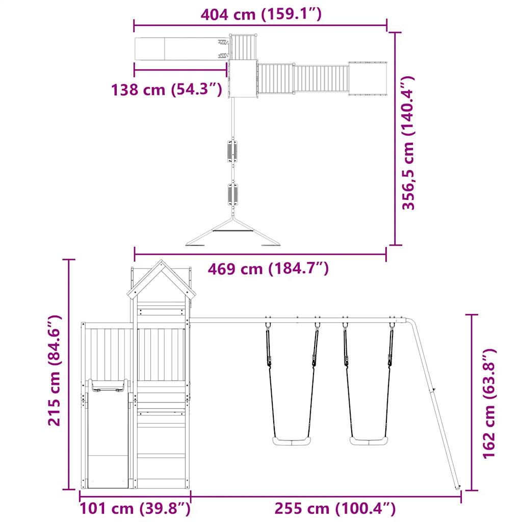 - Játszótorony anyaga: vákuumos nyomással impregnált fenyőfa