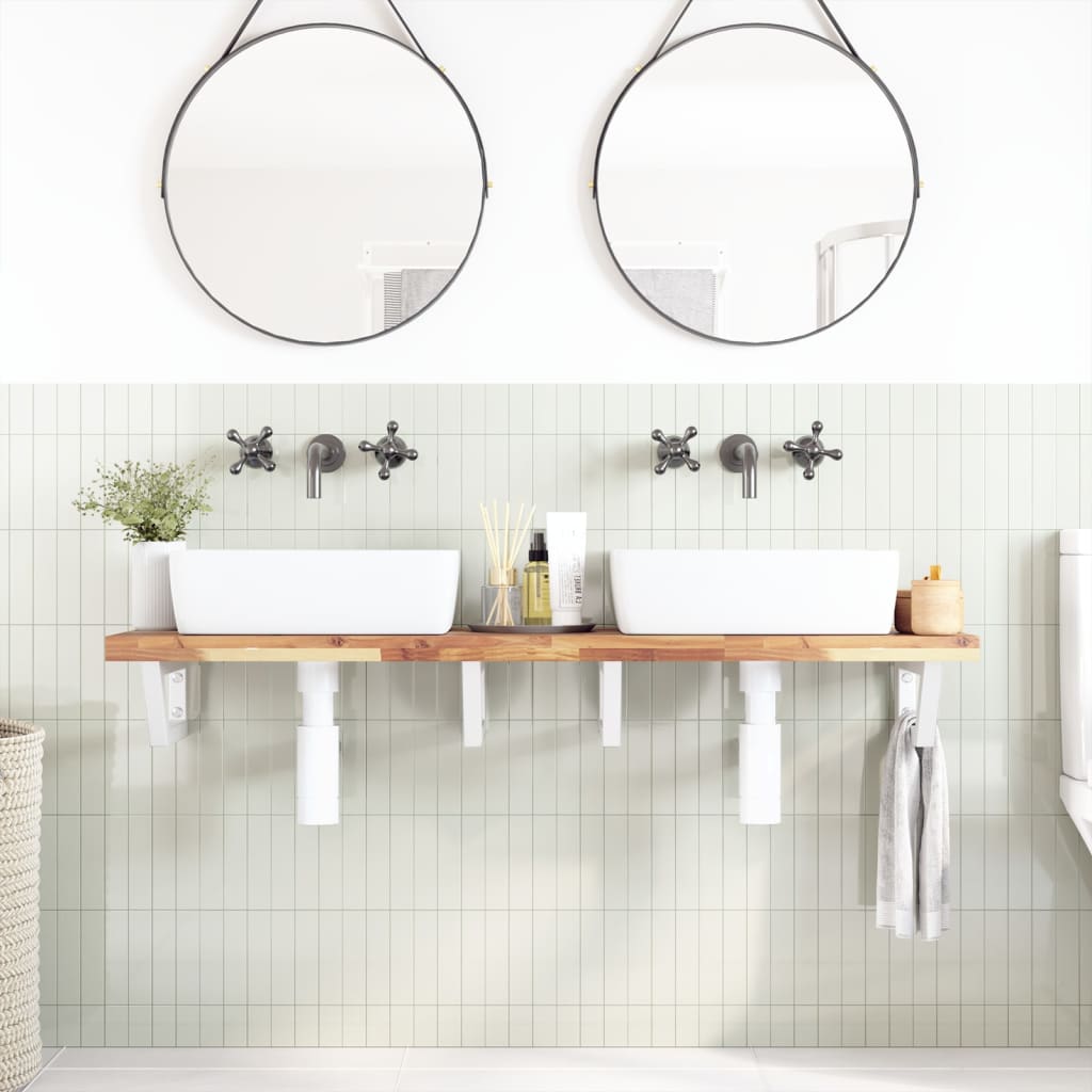 vidaXL acél és tömör akácfa falra szerelhető mosdópolc