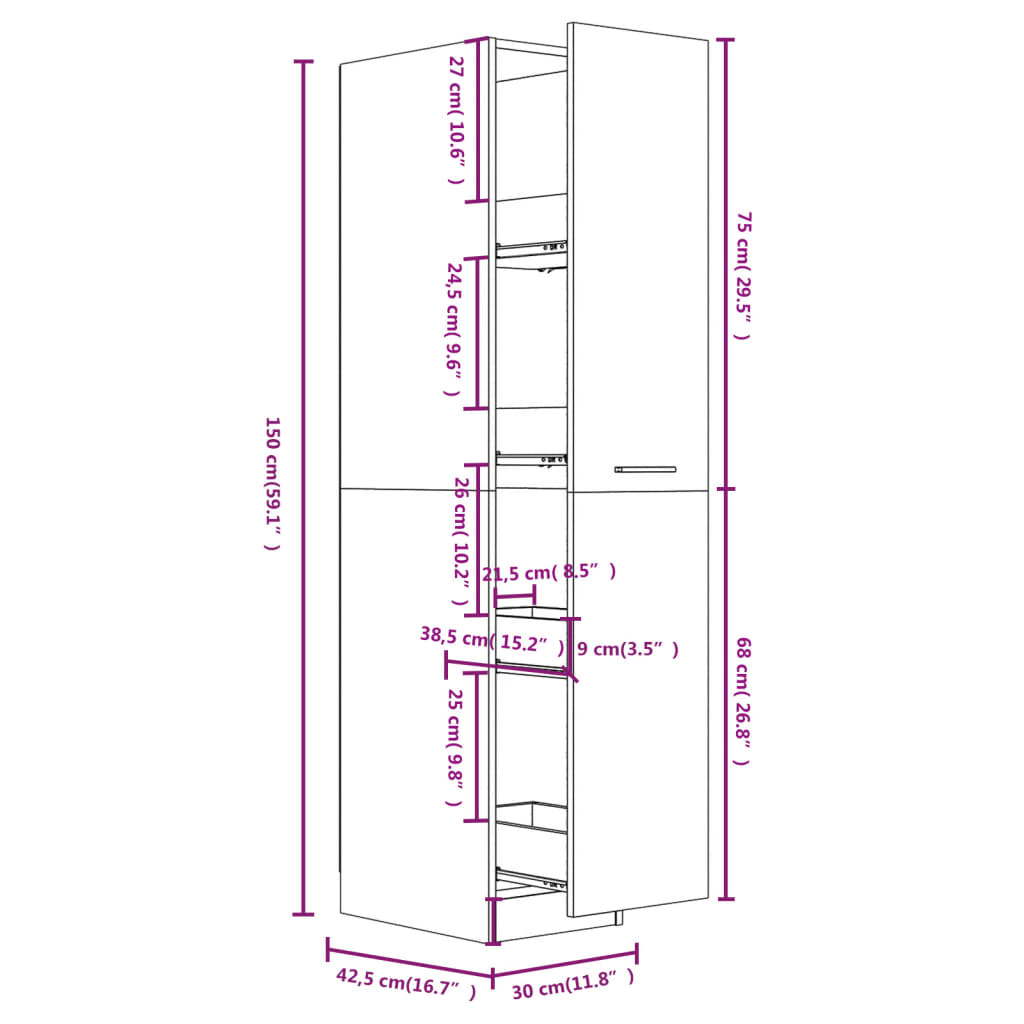- Mérete: 30 x 42,5 x 150 cm (Ho x Szé x Ma)