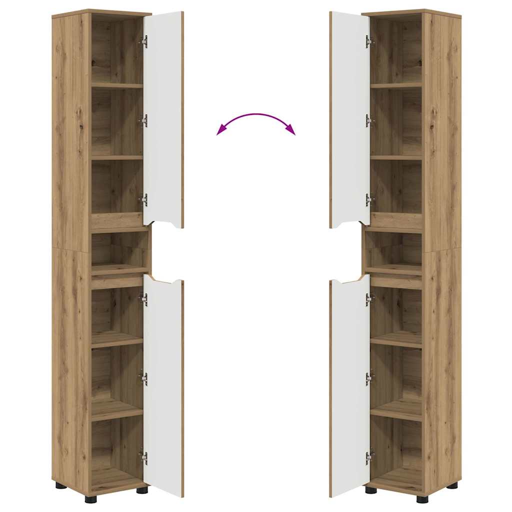 A Modern Fürdőszoba Szekrény egy stílusos kiegészítője bármely otthonnak, simán ötvözi a funkcionalitást és a modern dizájnt. Tiszta vonalai és felesleges díszítmények hiánya a kortárs életstílust képviselik, amiben a egyszerűség és hatékonyság van a középpontban. Az mérnöki fából készült struktúrája sima textúrát ad a fürdőszobának. Bőséges tárolási lehetőségével a szekrény tökéletes a fürdőszobai alapanyagok rendezett tárolására, így zökkenőmentessé teszi a napi rutinokat.