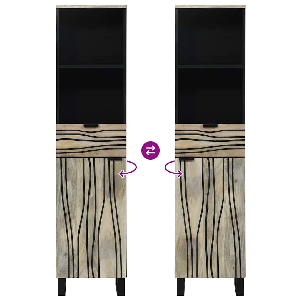 Ez a modern fürdőszobai mosdókagyló szekrény menő és karcsú dizájnja miatt bármilyen fürdőszoba stílusába beleillik, szép egyszerűségével. Kortárs hangulatot áraszt, praktikus tárolási megoldással, téglalap alakú formájával és tágas helyével, ami ideális a fürdőszobai felszerelésekhez. A fekete, texturált felület mélységet ad, és jól kiegészíti a minimalista vonalakat, eleganciát és funkcionalitást biztosítva a fürdőszobádnak. Beltéri használatra készült, kényelmesen illeszkedik kisebb fürdőszobákba, miközben jól mutat nagyobb terekben is.