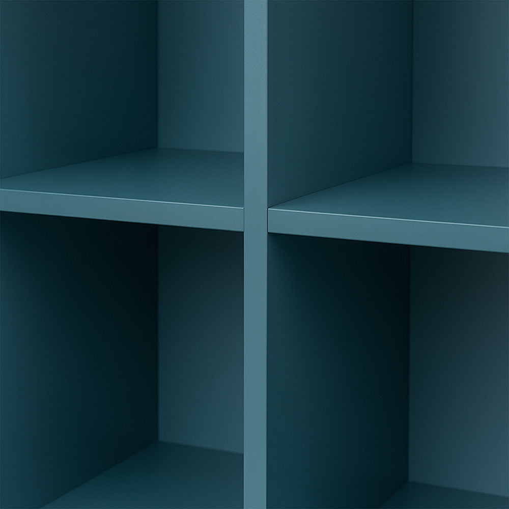 A petrol kék nyitott Boxie fali szekrény ideális választás tudatos lakberendezőknek, kisebb lakások tulajdonosainak és mindazoknak, akik értékelik a variálható, dekoratív tárolókat.