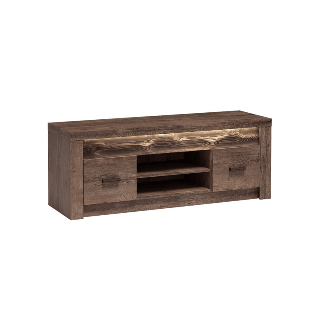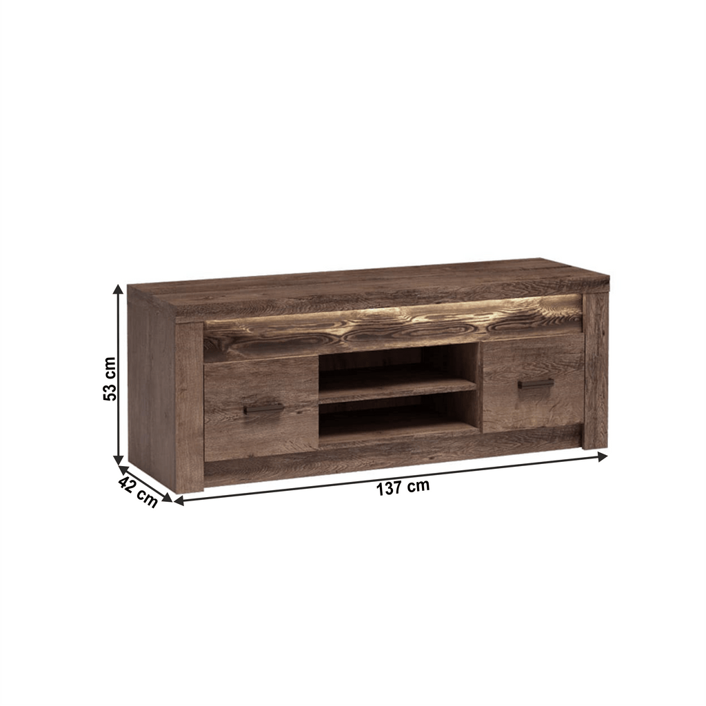 TV-állvány INFINITY 09 Váz: 48 mm vastag Fém fogantyúk Anyag: laminált DTD, ABS élek Színváltozat: sötét kőris Méretek (SzéxMéxMa): 137x42x53 cm Szállítás szétszerelve.