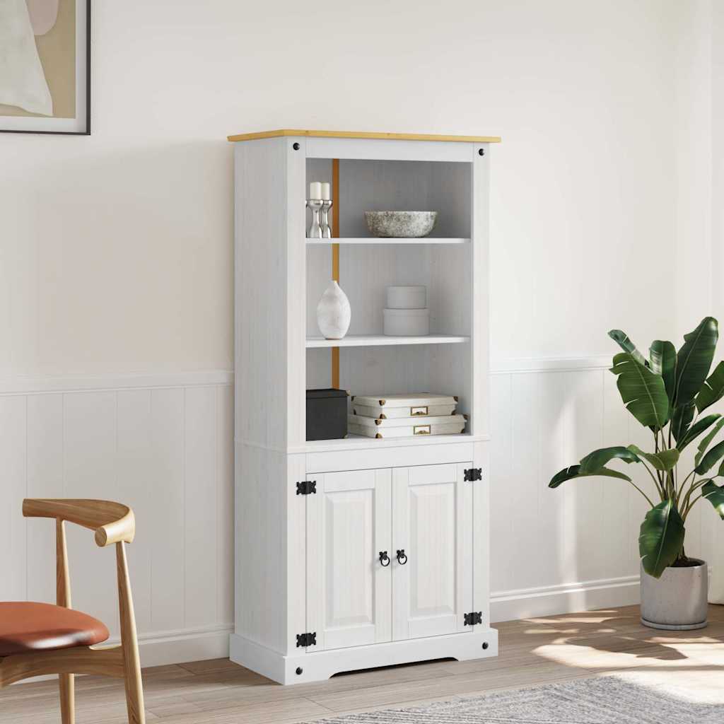 A tömör fenyőfából készült tálalószekrény erős és robusztus. A fenti 3 nyitott polc ideális könyvek vagy üvegáru tárolására, valamint dísztárgyak bemutatására. Az alsó szekrény két polccal lett ellátva, és bőséges tárolóhelyet biztosít.
