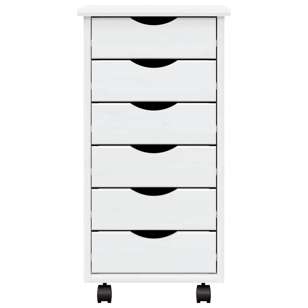 vidaXL MOSS fehér tömör fenyőfa görgős szekrény fiókokkal