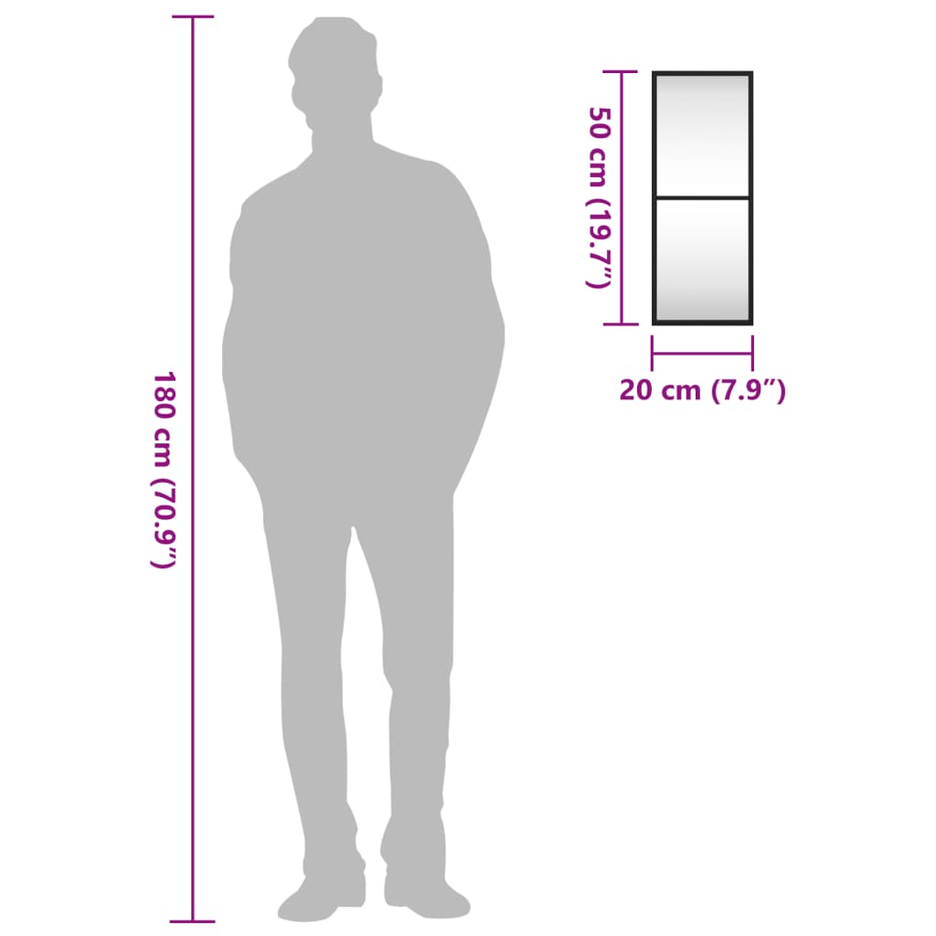 vidaXL fekete téglalap alakú vas fali tükör 20 x 50 cm