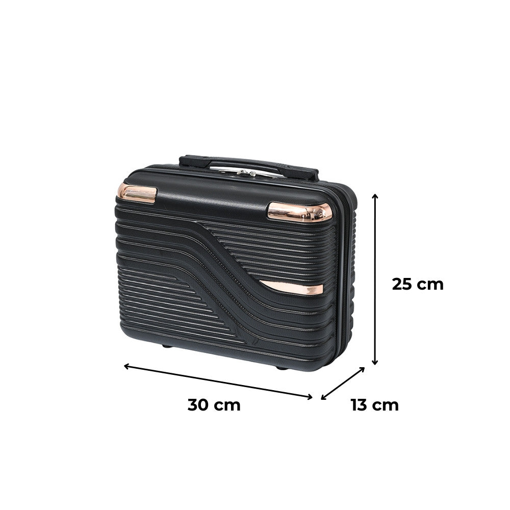A modern design nem csak mutatós, de funkcionális is. A bordázott, hullámos forma vizuálisan megtöri a felületet, miközben erősíti a szerkezetet. A fekete és rose gold színkombináció luxusérzetet kelt – mintha egy prémium kiegészítőt viselnél, nem egy neszeszert hordanál. Ez a neszeszer azoknak szól, akik nem csak praktikus, de szép megoldást keresnek. Legyél üzleti úton, romantikus hétvégén vagy hosszabb nyaraláson – ez a táska veled tart.