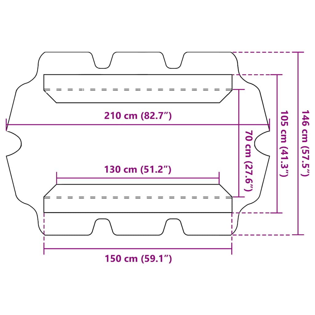 - Ponyva mérete: 150 x 82,5/105 x 18 cm (Ho x Szé x Ma)