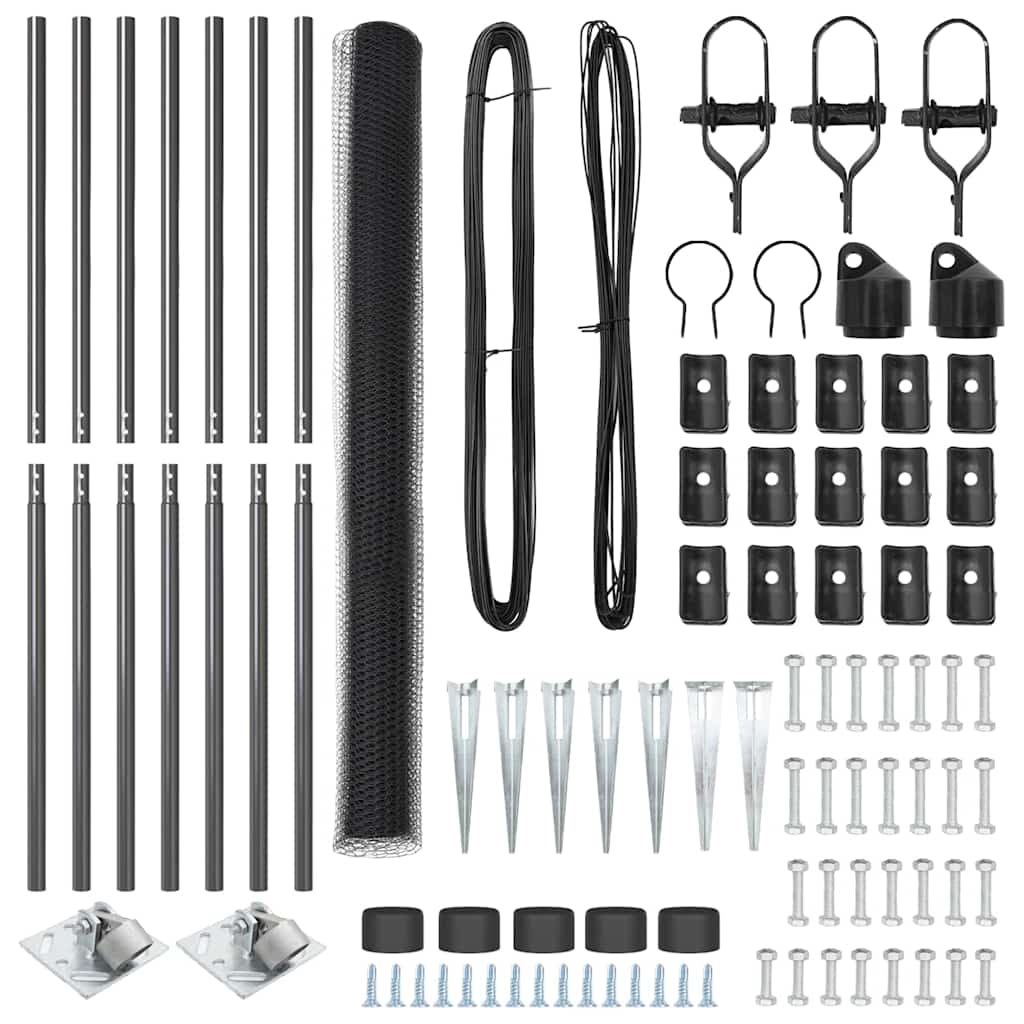 vidaXL Kerítés oszlopokkal Szürke 1.5 x 10 m PVC-bevonatos acél
