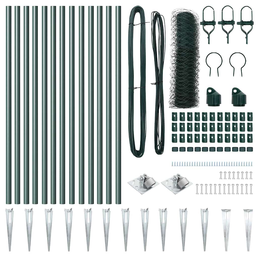 vidaXL Kerítés oszlopokkal Zöld 0,4 x 25 m PVC-bevonatos acél