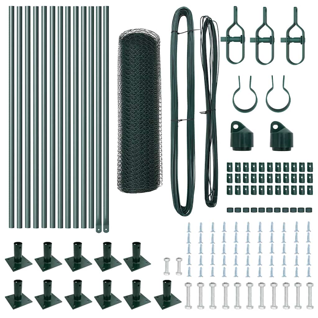 vidaXL Kerítés oszlopokkal Zöld 0,6 x 25 m PVC-bevonatos acél
