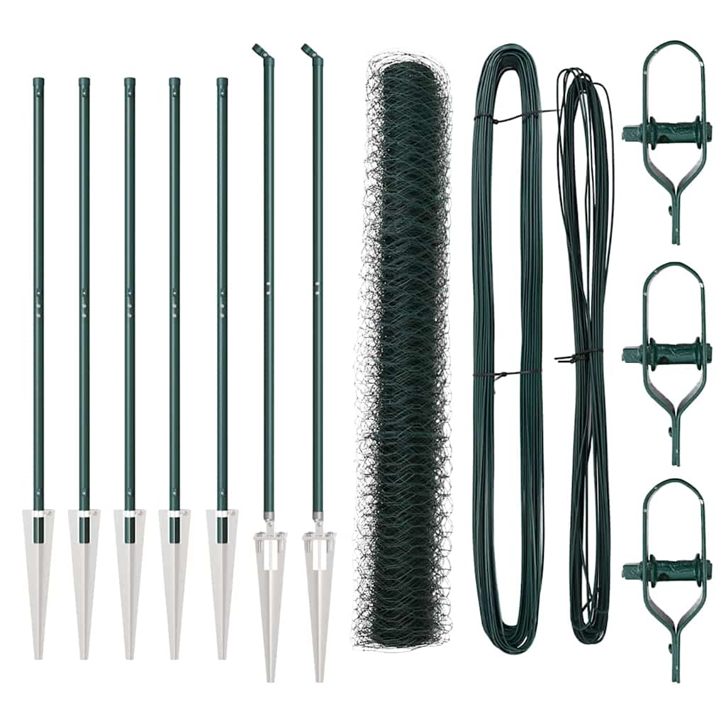 vidaXL Kerítés oszlopokkal Zöld 1.2 x 10 m PVC-bevonatos acél