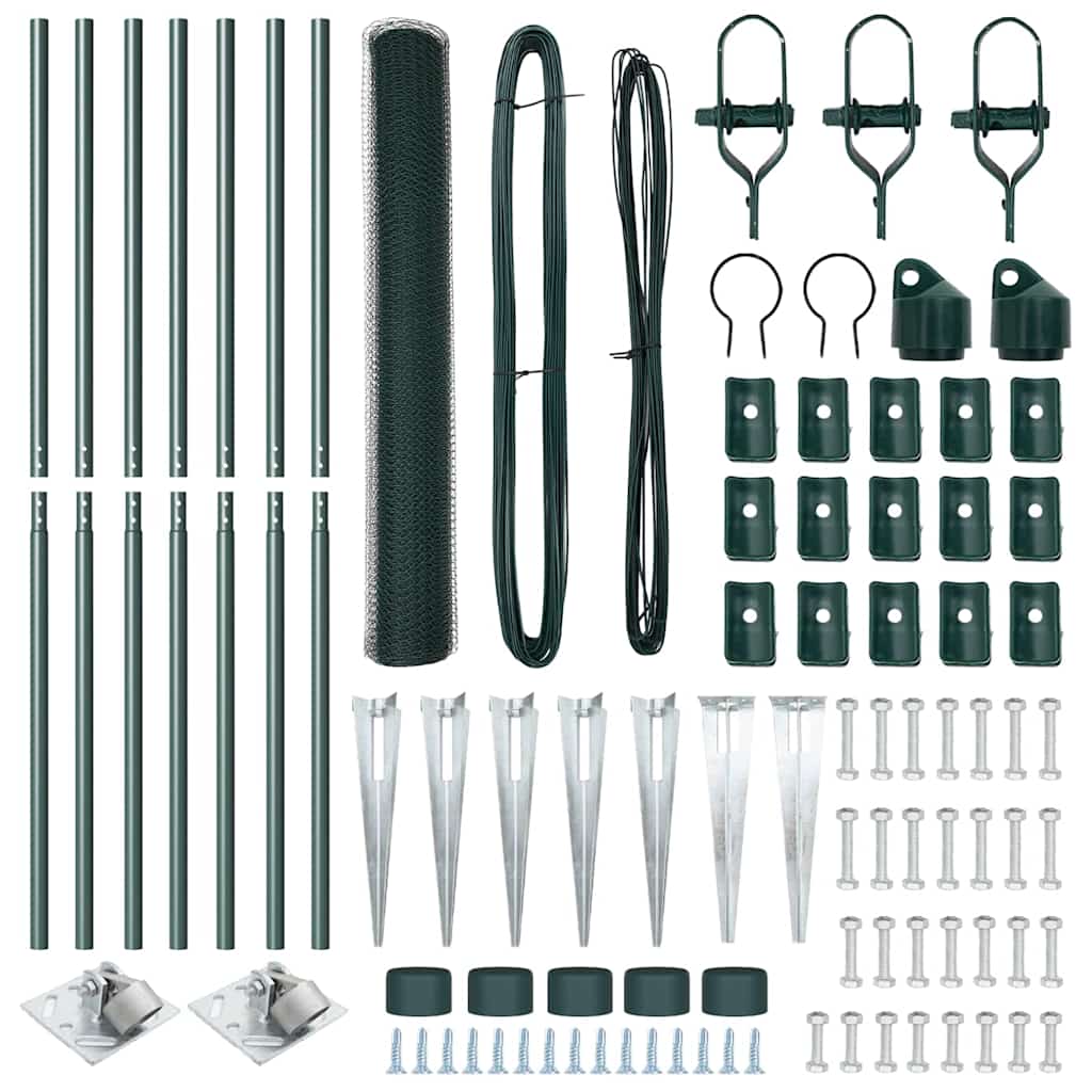vidaXL Kerítés oszlopokkal Zöld 1.2 x 10 m PVC-bevonatos acél