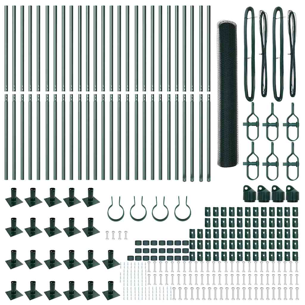 vidaXL Kerítés oszlopokkal Zöld 1.2 x 50 m PVC-bevonatos acél