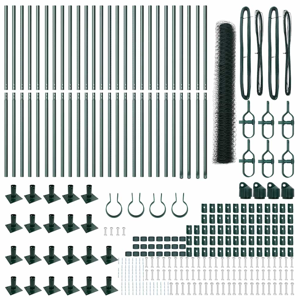 vidaXL Kerítés oszlopokkal Zöld 1.2 x 50 m PVC-bevonatos acél