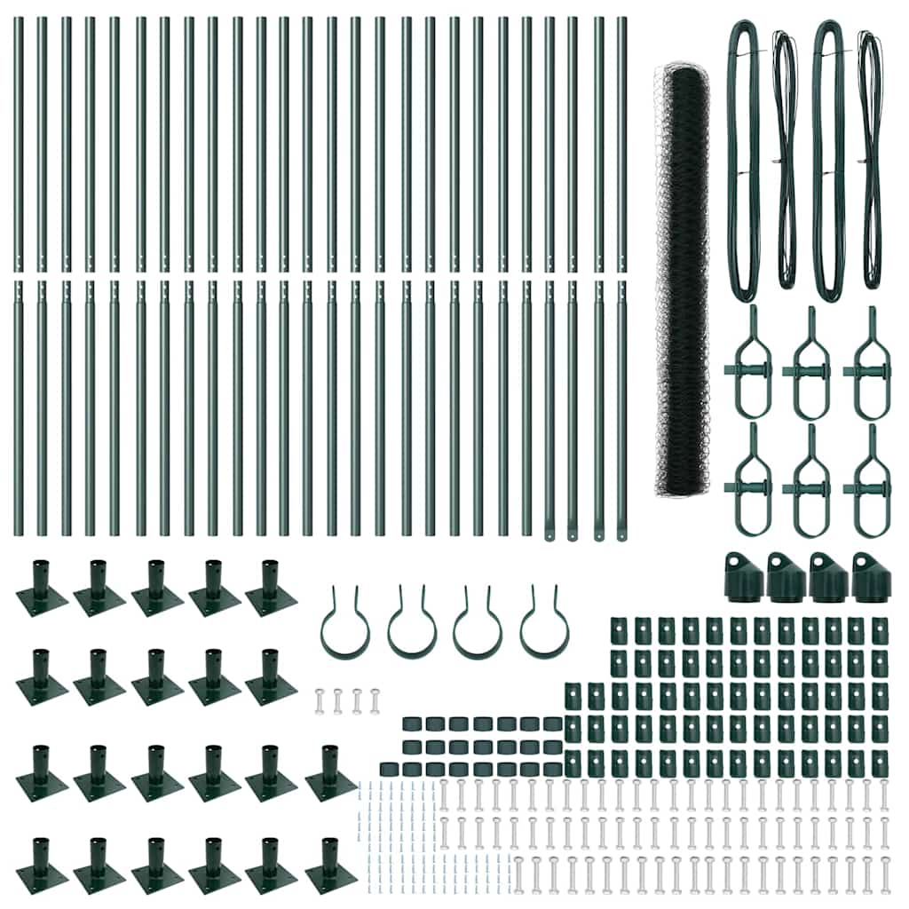 vidaXL Kerítés oszlopokkal Zöld 1.5 x 50 m PVC-bevonatos acél