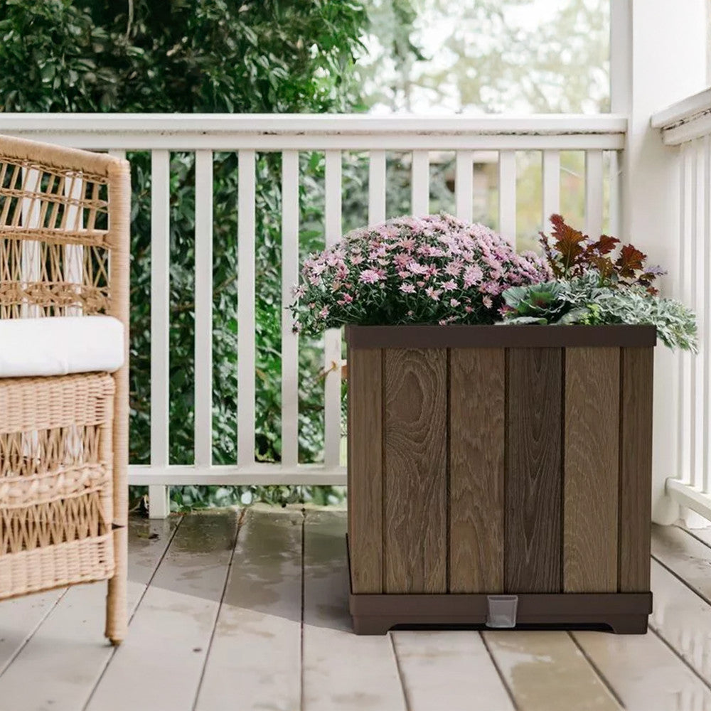 A Keter DecoCoat™ anyaga új generációs, UV-álló műanyag, amely természetes fafelületet imitál, miközben teljesen időjárásálló. Az integrált vízelvezető és víztartályos öntözőrendszer fenntartja az ideális talajnedvességet – így biztosítva egészségesebb növekedést a gyökérzónában.