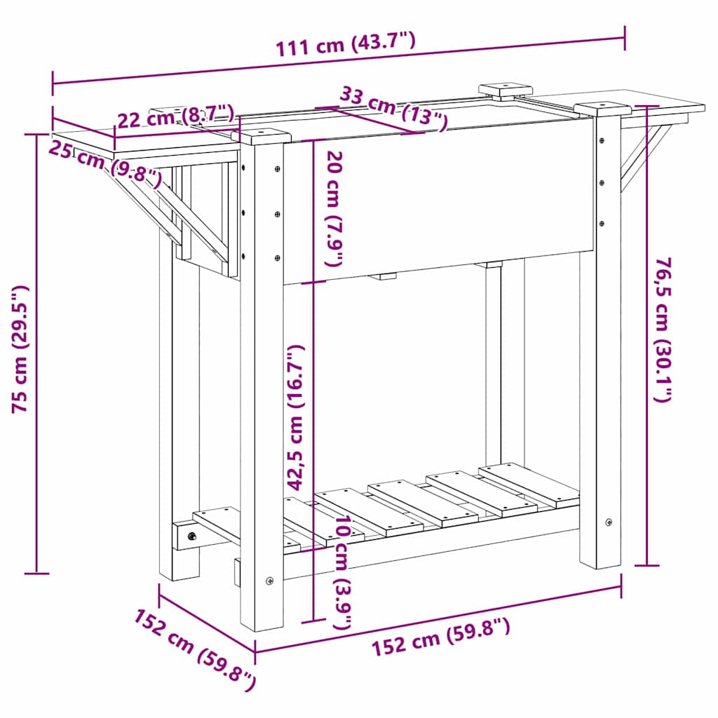 • Beépített komponensek: Az ültető beépített polccal rendelkezik, ami extra tárolóhelyet ad. Ugyanabból a masszív fenyőfából készült, ez a polc megkönnyíti a kertészeti eszközökhöz való hozzáférést. Remek választás lelkes kertészeknek, akik praktikus, mégis stílusos megoldásokat keresnek.