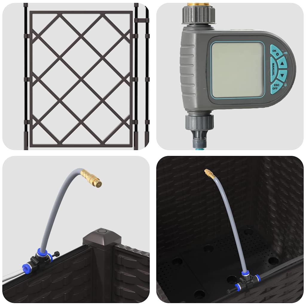 • Beépített locsolórendszer: Egy fejlett locsolórendszerrel felszerelve ez a kertészeti láda leveszi a locsolás rejtvényeit. Beépített csatornáit használva hatékonyan elosztja a vizet közvetlenül a növény gyökereire, biztosítva számukra a megfelelő nedvességet, miközben csökkenti a vízfelesleget, és támogatja az egészséges növekedést.