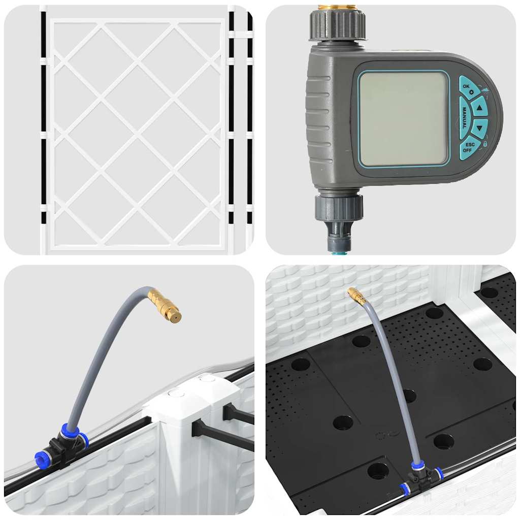 • Beépített locsolórendszer: Egy fejlett locsolórendszerrel felszerelve ez a kertészeti láda leveszi a locsolás rejtvényeit. Beépített csatornáit használva hatékonyan elosztja a vizet közvetlenül a növény gyökereire, biztosítva számukra a megfelelő nedvességet, miközben csökkenti a vízfelesleget, és támogatja az egészséges növekedést.