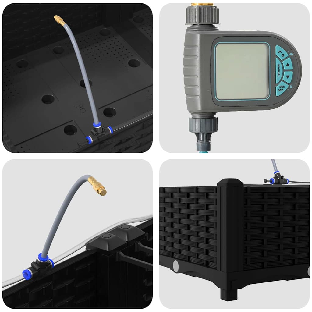 - Beépített locsolórendszer: Egy fejlett locsolórendszerrel felszerelve ez a kertészeti láda leveszi a locsolás rejtvényeit. Beépített csatornáit használva hatékonyan elosztja a vizet közvetlenül a növény gyökereire, biztosítva számukra a megfelelő nedvességet, miközben csökkenti a vízfelesleget, és támogatja az egészséges növekedést.