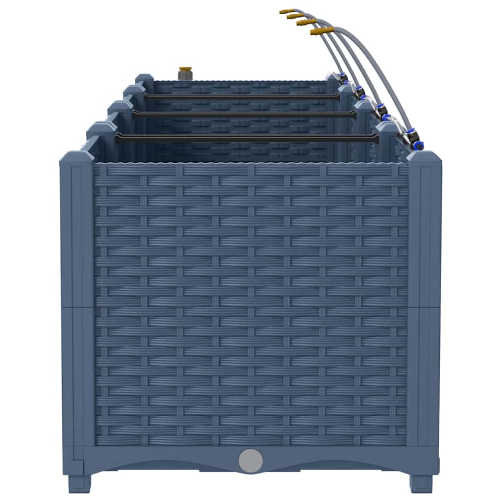 Ez a locsolórendszerrel ellátott kertészeti láda egy modern megoldás, amit kültéri kedvelők számára terveztek. Letisztult téglalap alakja, a texturált szőtt mintával kombinálva, kortárs érintést ad a kerted vagy teraszod terének. Ideális különböző növények ültetésére, ez a láda jelentős, esztétikailag vonzó alapot kínál kertészeti törekvéseidhez. Zökkenőmentesen beleolvad bármely kert dekorációba, funktionális és stílusos lehetőséget nyújt a házi kertészek számára. A láda tökéletes azok számára, akik szeretnék gyönyörű zöld növényekkel gazdagítani kültéri terüket, amelyet egy innovatív locsolórendszer táplál, és elősegíti az egészséges növekedést. Emelt kialakítása egyfajta kifinomultságot hoz, miközben biztosítja a praktikus használatot, így ez a darab kötelező kellék a kertészek számára.