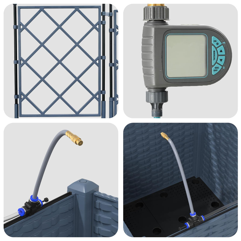 Anyagkonstrukció: A kertészeti láda UV-álló acélból készült, biztosítva a tartósságot és az időjárási változásokkal szembeni ellenállást. Ez az anyagválasztás masszív védelmet kínál, megfelelően ellenáll a kemény napfénynek és az évszakok változásainak, így a növényeid egész évben jól fognak virágzani, anélkül, hogy a láda szerkezeti integritása sérülne. Beépített locsolórendszer: Egy fejlett locsolórendszerrel felszerelve ez a kertészeti láda leveszi a locsolás rejtvényeit. Beépített csatornáit használva hatékonyan elosztja a vizet közvetlenül a növény gyökereire, biztosítva számukra a megfelelő nedvességet, miközben csökkenti a vízfelesleget, és támogatja az egészséges növekedést. Modern dizájn: A chic szőtt minta bemutatásával a láda elegáns egyszerűsége összhangban áll a modern esztétikával. Nem fénylő matt felülete finom érintést ad, lehetővé téve, hogy zökkenőmentesen integrálódjon a változatos kültéri környezetekbe, miközben kortárs stílust testesít meg letisztult, visszafogott vonalaival. Varázslatos használat: Ideális kültéri elhelyezésre, ez a láda dekoratív és praktikus célokat is szolgál. Tágas belseje különféle növénytípusokat képes elhelyezni, a buja páfrányoktól kezdve a vibráló virágokig, így a szezonális váltásokhoz vagy az év bármely szakában használható, prémium ültetési élményt kínálva a hobbikertészek és tapasztalt kertészek számára egyaránt. Karbantartás & gondozás: Pristine megjelenésének megőrzéséhez helyezd ezt a ládát stabil helyre, és kerüld el a közvetlen napfény hosszan tartó kitettségét. Rendszeresen tisztítsd száraz ruhával, és gondoskodj a stabil összeszerelésről, hogy biztosítsd a stabilitást és a hosszú távú esztétikai értéket.- Szín: Szürke