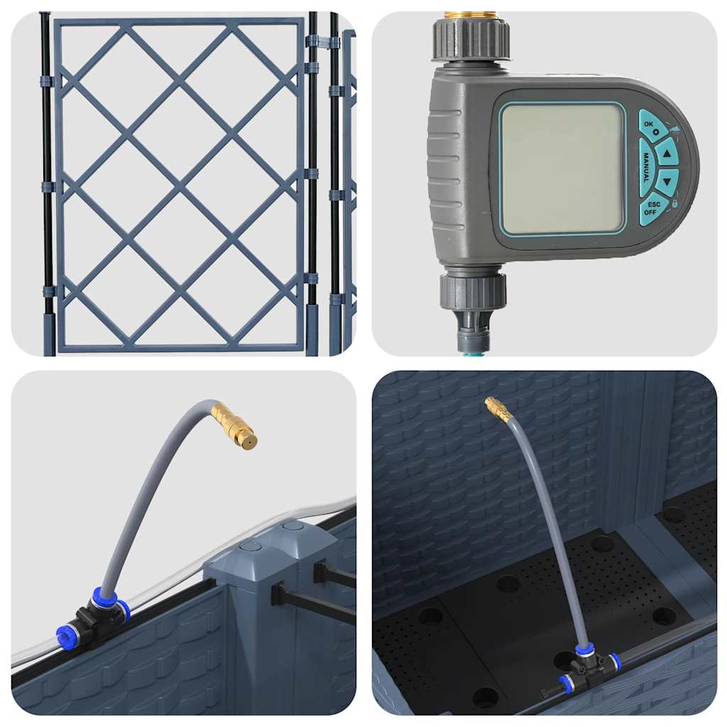 Anyagkonstrukció: A kertészeti láda UV-álló acélból készült, biztosítva a tartósságot és az időjárási változásokkal szembeni ellenállást. Ez az anyagválasztás masszív védelmet kínál, megfelelően ellenáll a kemény napfénynek és az évszakok változásainak, így a növényeid egész évben jól fognak virágzani, anélkül, hogy a láda szerkezeti integritása sérülne. Beépített locsolórendszer: Egy fejlett locsolórendszerrel felszerelve ez a kertészeti láda leveszi a locsolás rejtvényeit. Beépített csatornáit használva hatékonyan elosztja a vizet közvetlenül a növény gyökereire, biztosítva számukra a megfelelő nedvességet, miközben csökkenti a vízfelesleget, és támogatja az egészséges növekedést. Modern dizájn: A chic szőtt minta bemutatásával a láda elegáns egyszerűsége összhangban áll a modern esztétikával. Nem fénylő matt felülete finom érintést ad, lehetővé téve, hogy zökkenőmentesen integrálódjon a változatos kültéri környezetekbe, miközben kortárs stílust testesít meg letisztult, visszafogott vonalaival. Varázslatos használat: Ideális kültéri elhelyezésre, ez a láda dekoratív és praktikus célokat is szolgál. Tágas belseje különféle növénytípusokat képes elhelyezni, a buja páfrányoktól kezdve a vibráló virágokig, így a szezonális váltásokhoz vagy az év bármely szakában használható, prémium ültetési élményt kínálva a hobbikertészek és tapasztalt kertészek számára egyaránt. Karbantartás & gondozás: Pristine megjelenésének megőrzéséhez helyezd ezt a ládát stabil helyre, és kerüld el a közvetlen napfény hosszan tartó kitettségét. Rendszeresen tisztítsd száraz ruhával, és gondoskodj a stabil összeszerelésről, hogy biztosítsd a stabilitást és a hosszú távú esztétikai értéket.- Szín: Szürke