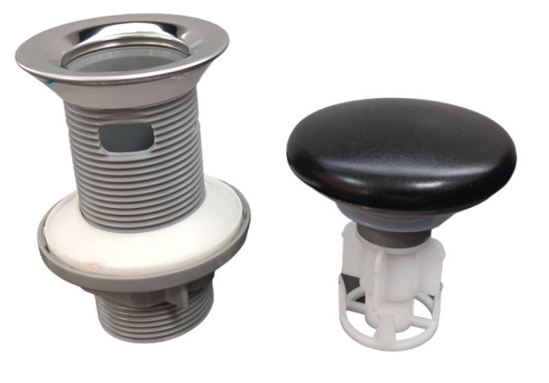 Klikk - klakk leeresztőszelep - KEREK - matt fekete - túlfolyós mosdókagylóhoz - Ø 73 mm