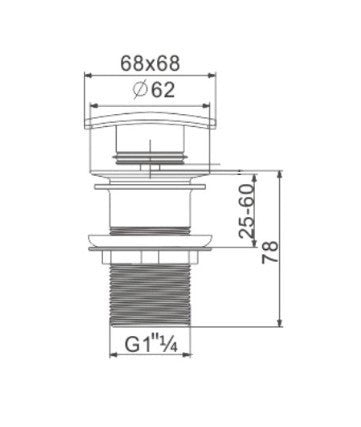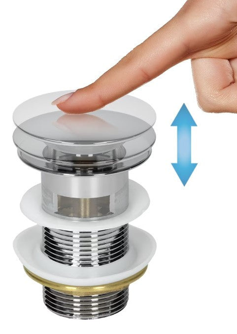 Klikk - klakk leeresztőszelep - SZÖGLETES - KRÓM - túlfolyó NÉLKÜLI modókagylóhoz 5/4"
