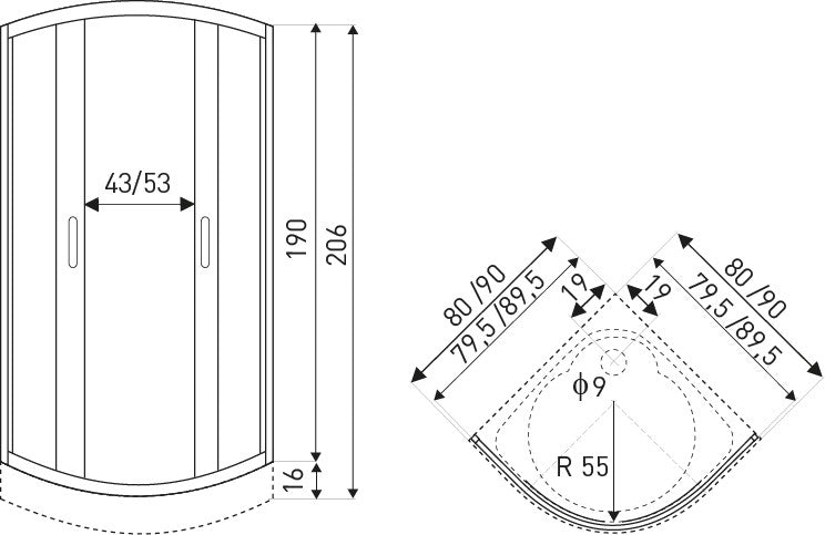 • Méretek - 90x90x190 (zuhanytálca nélkül) 90x90x206 cm (zuhanytálcával)