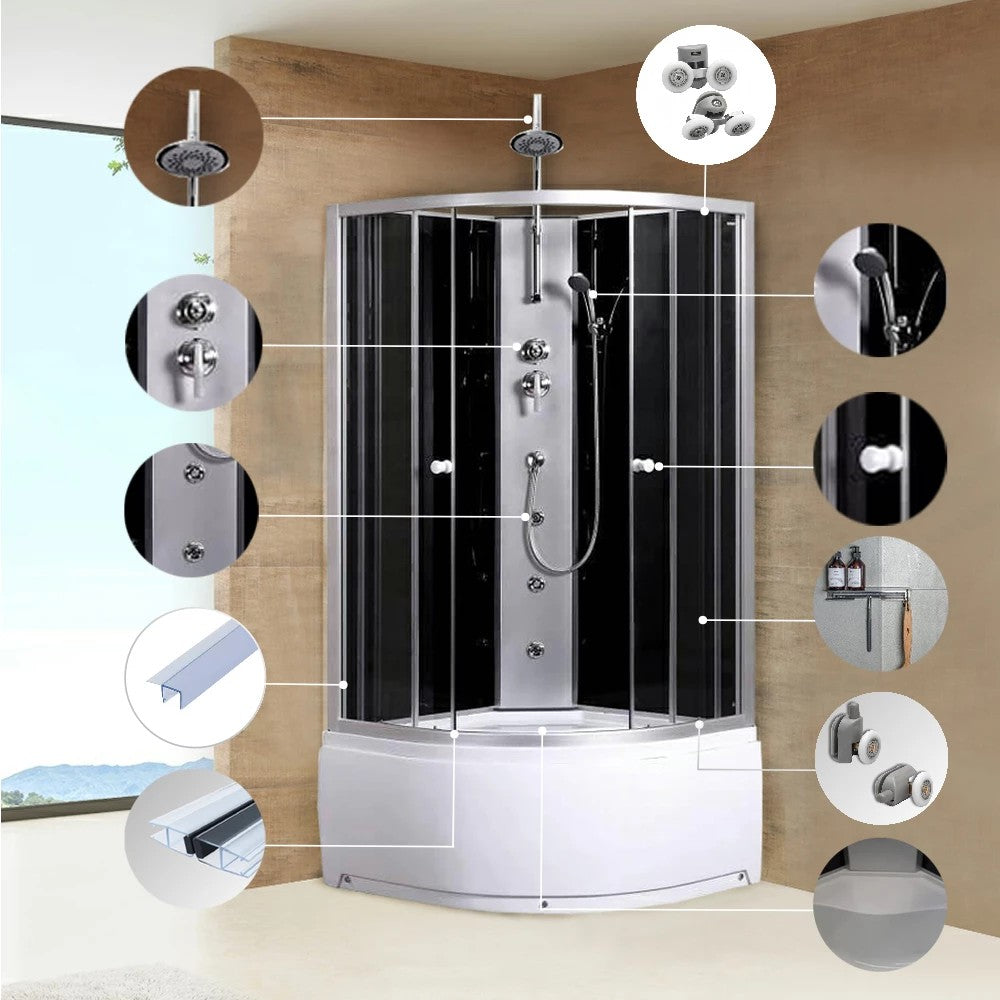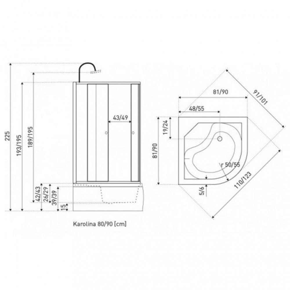 A Karolina hidromasszázs kádkabin Európai gyártmányú hidromasszázs zuhanykabin, választható kétféle méretben, alumínium profillal, 4 mm vastag biztonsági üveggel. Kiváló minőségű fehér akril zuhanytálca tartozik a termékhez, mély kialakítással.
