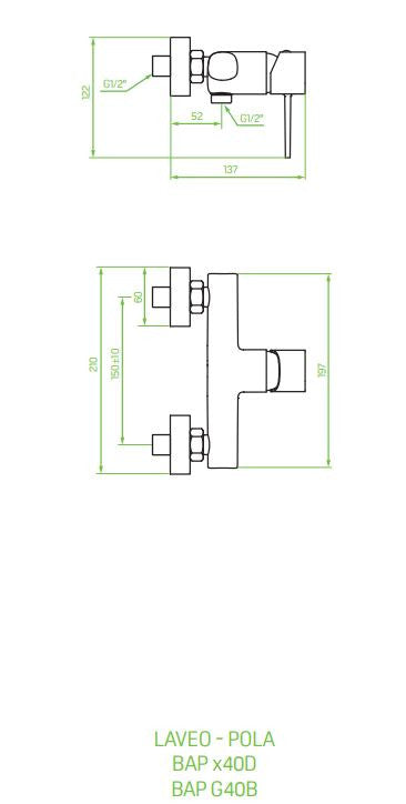LAVEO POLA falra szerelhető zuhanycsap zuhanyszettel, fekete