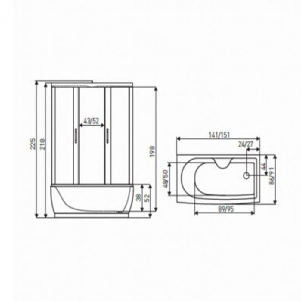 2,Mocca hidromasszázs zuhanykabin, 150x90x225 cm-es méretben