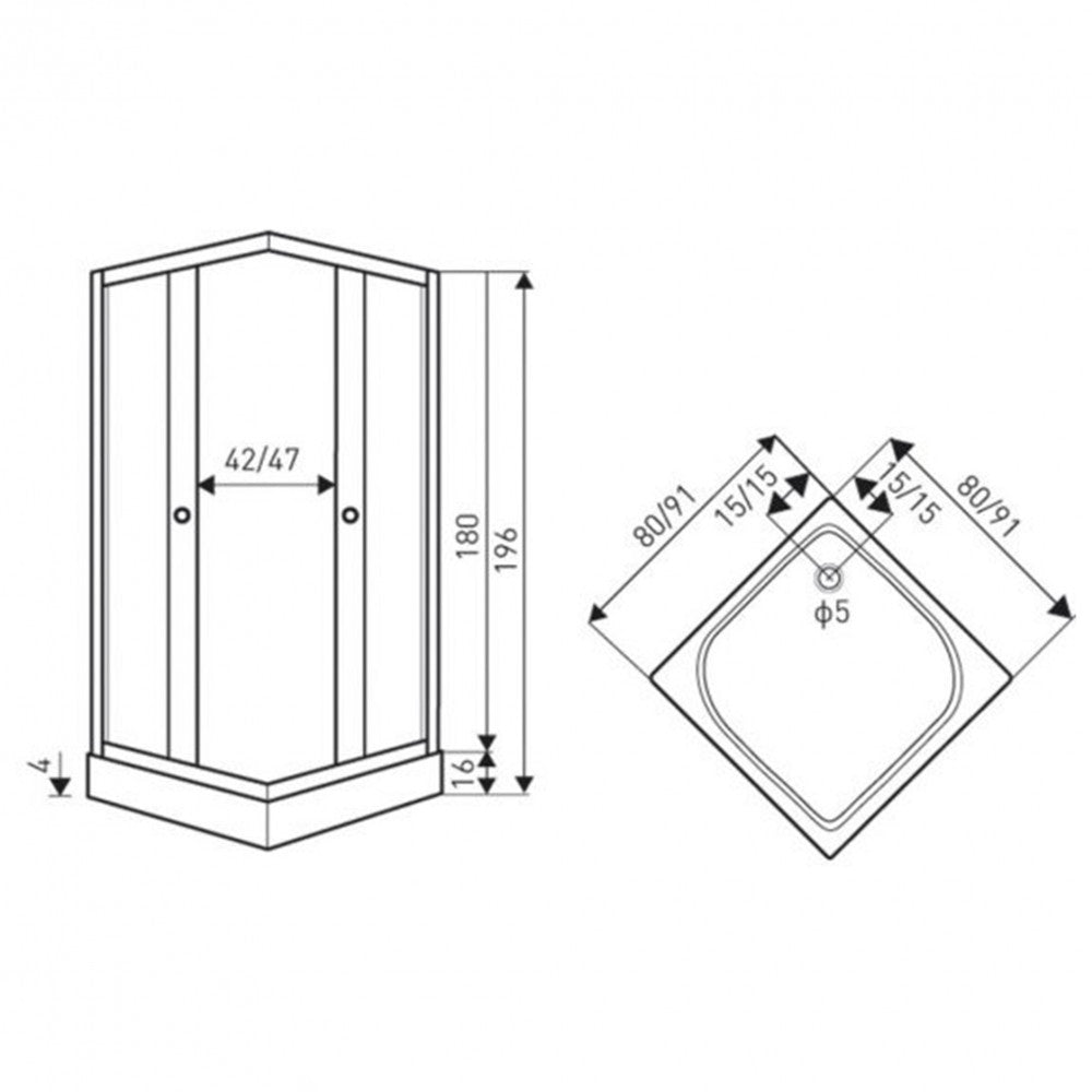 A zuhanykabin 4 mm-es edzett biztonsági üveggel van ellátva. A zuhanykabin szögletes kivitelben kapható. Dupla tolóajtóval van ellátva. A zuhanykabin 80x80x196 cm-es, a zuhanytálca 80x80x16 cm-es. Olga SQ Zuhanykabin zuhanytálcával kapható.