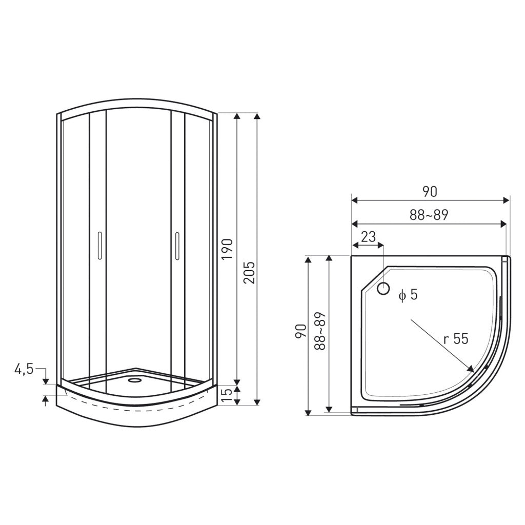 A csomag tartalmaz egy fehér színű akril zuhanytálcát is, amely 90 × 90 cm-es méretével tökéletesen illeszkedik a kabinhoz. A 15 cm magas tálca könnyű belépést tesz lehetővé, míg az ajánlott Speed fi 50 szifon segítségével gyors vízelvezetést biztosíthatsz – ezt külön szükséges megvásárolni.