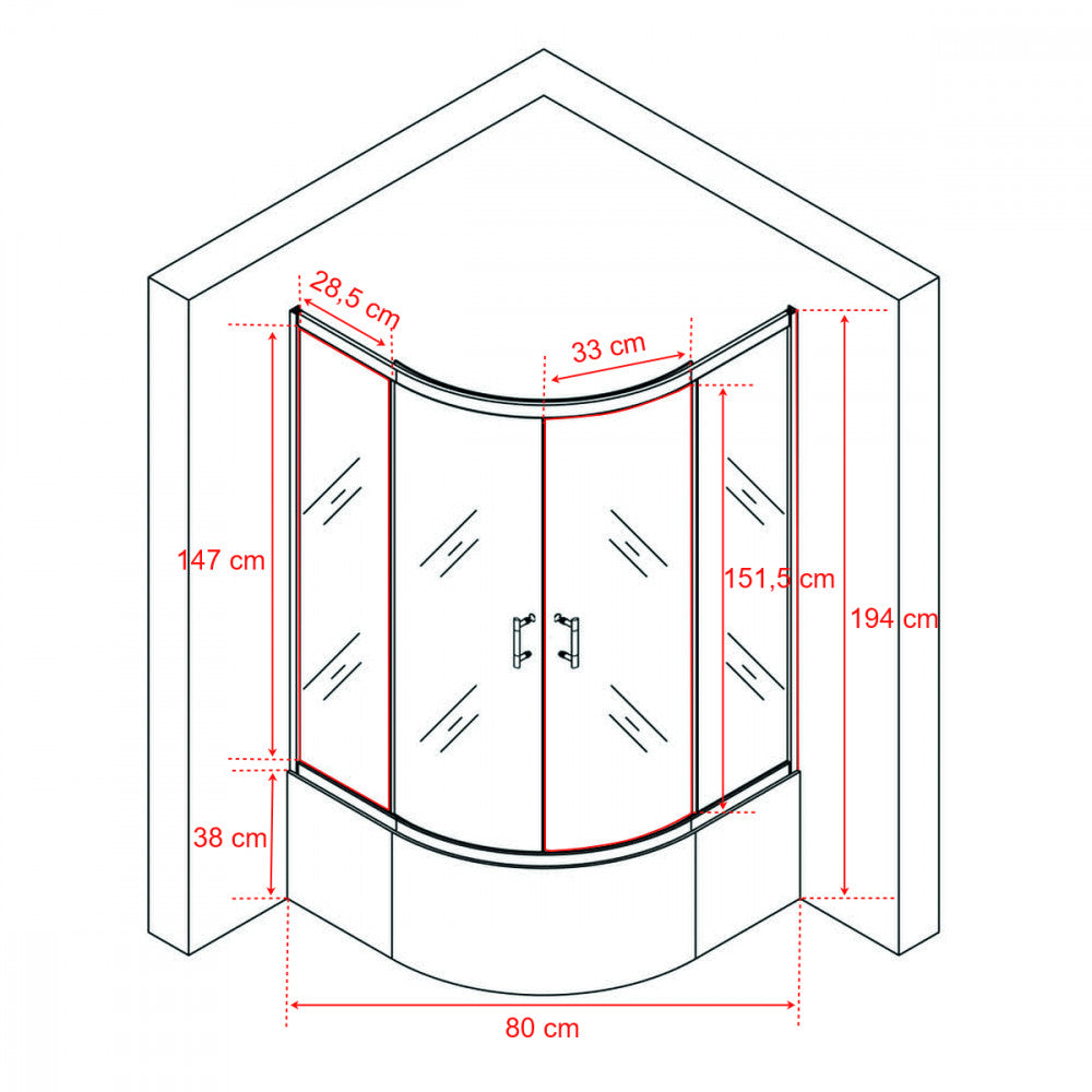 Spirit Deep 80x80 cm-es íves zuhanykabin, mélytálcával