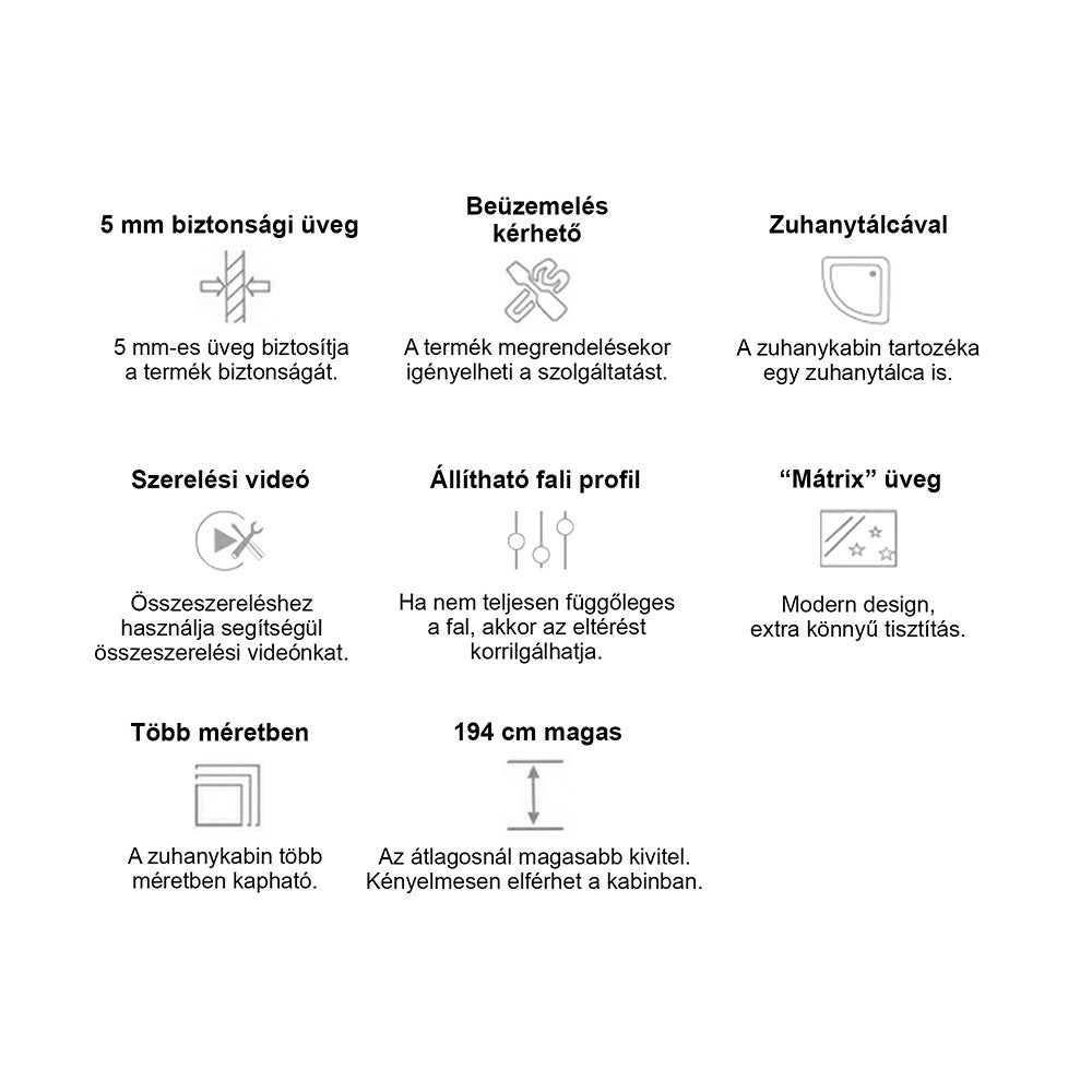 Spirit Mátrix 80x80 cm szögletes zuhanykabin, zuhanytálcával