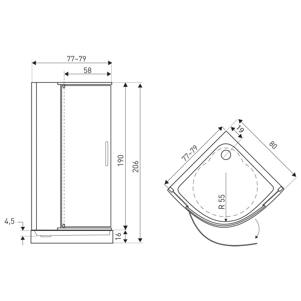 SPLASH Black 80 × 80 cm íves zuhanykabin – 16 cm mély zuhanytálcával
